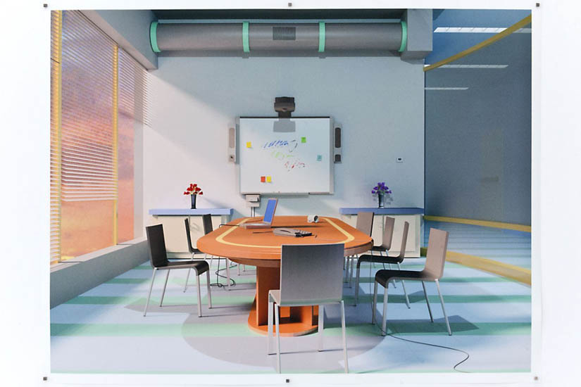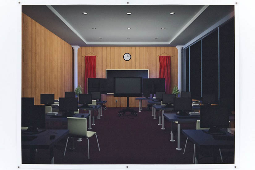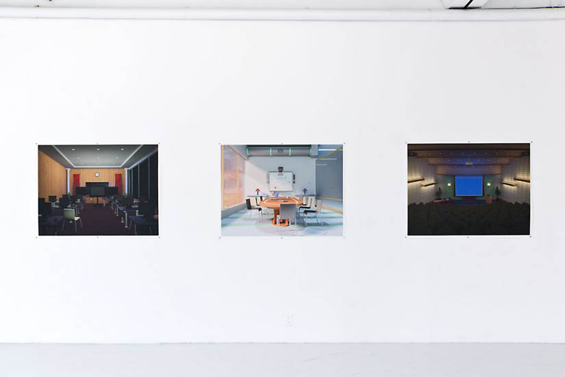 P r e s e n t e r M o d e Displays are an inescapable touchstone of contemporary society. They are the inward and outward eye of the User. Within the context of and Institution the Display is revered as a necessary point of contact between humans, paramount to the transmission of ideas. However, the Display has meaning in the absence of input. Consider the human-less function of the Display. It is an act of silent meditation: a golden ratio that is both void and charged, absorbing and emanating. Within an operating system, “presenter mode“ is a mechanism to remove human influence/personalization from a Display, to provide a clean plane for the dedicated function. Through three-dimensional software and actual, real objects, Presenter Mode highlights what is essential about the Display, void of User. ![]() |